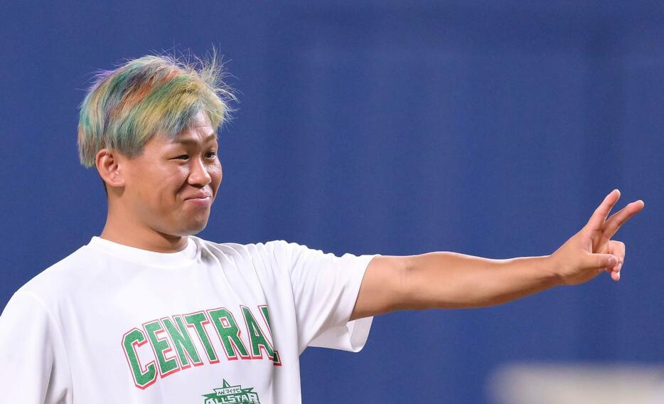 この日はオールスター初日。ど派手な12色のレインボーカラーのヘアスタイルで登場し「10年目で獲得できたというのは、ジャイアンツにも高津監督にも感謝しています。誰もが取得できる権利ではないので若いときから頑張ってきて良かった」と笑顔を見せた。権利行使の有無については「今はチームのことしか考えていないので」と話した。