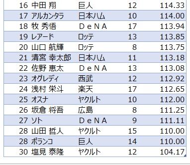 【プロ野球】今季の新外国人野手WAR 2022年10月13日 カテゴリ:野球雑談 1: それでも動く名無し 2022/10/11(火) 04:26:24.76 ID:M3j2NLcp0 ウォーカー(巨) 124試合 1.6 マクブルーム(広) 128試合 1.3 オグレディ(西) 123試合 0.8 ポランコ(巨) 138試合 0.4 ギッテンス(楽) 21試合 0.1 ガルビス(ソ) 38試合 -0.1 ラベロ(オ) 24試合 -0.4 アルカンタラ(日) 97試合 -0.4 バレラ(オ) 37試合 -0.4 マッカーシー(オ) 59試合 -0.5 ロドリゲス(神) 24試合 -0.5 マルモレホス(楽) 58試合 -0.8 キブレハン(ヤ) 29試合 -0.9 ジャンセン(西) 35試合 -1.0 レビーラ(中) 21試合 -1.0 ヌニエス(日) 63試合 -1.1 【【プロ野球】今季の新外国人野手WAR】の続きを読む タグ :#キブレハン#サンタナ#オスナ#ウォーカー#WAR#助っ人外国人#ヤクルトスワローズ#swallows#プロ野球